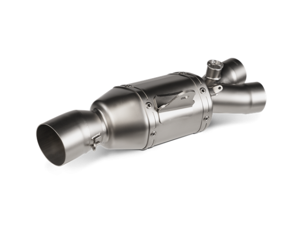 Optionale Link Pipe mit Resonator aus Edelstahl für die Montage mit dem Schalldämpfer- und Krümmersatz aus der Evolution Line S-Y6E9-APT oder der Racing Line S-Y6R9-APT. Sie senkt den Geräuschpegel für den Einsatz auf Rennstrecken, auf denen niedrigere Geräuschpegel erforderlich sind.