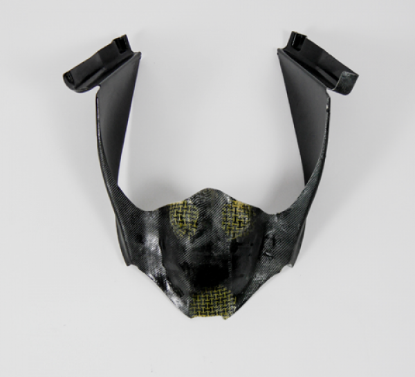Leichtes Verkleidungsteil aus gewebter GFK-Matte mit schwarzem Deckschichtharz (Gelcoat) und vormontierten Dzus-Panex Schnellverschlüssen. Alle Befestigungspunkte sind zusätzlich mit Kohle-Kevlar-Gewebe verstärkt, jedoch nicht vorgebohrt. Das Gewicht ist mit Carbon vergleichbar. Die Teile sind nicht grundiert oder lackiert.