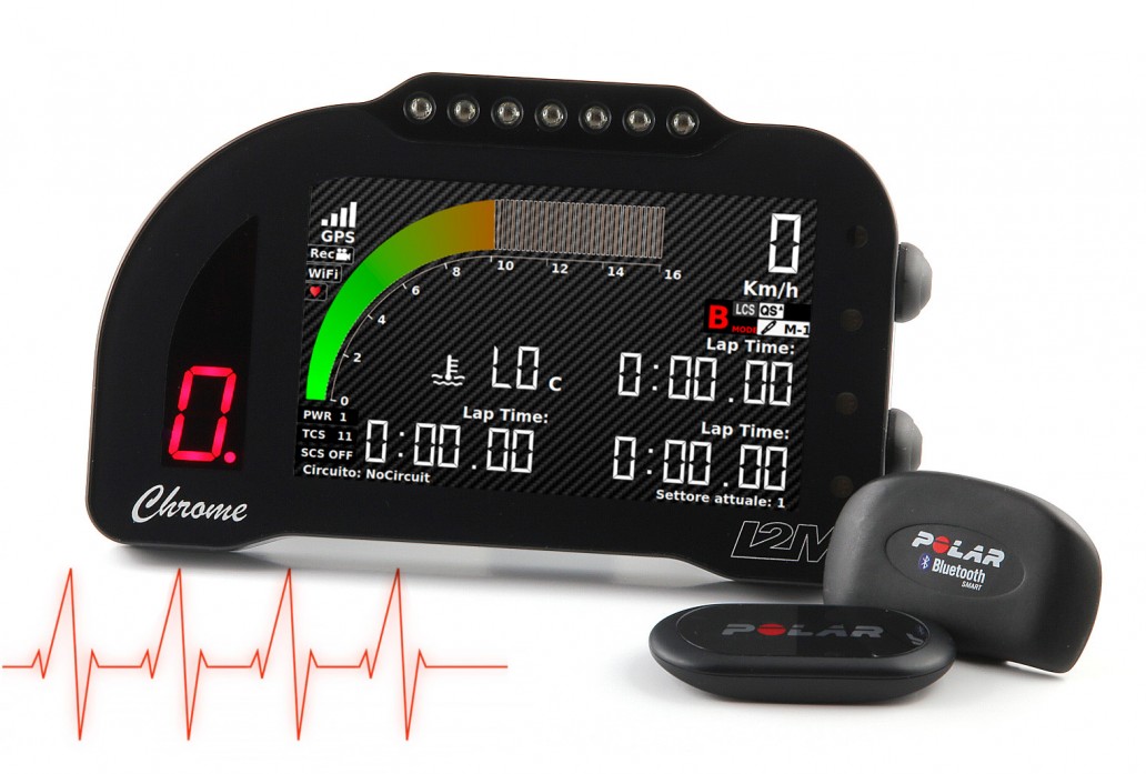 Dank des neuen integrierten Bluetooth BLE- Empfängers ist es möglich, den Chrome PRO 2 an einen Polar H7- oder H10- Herzfrequenzsensor anzuschließen . Ein herzförmiges Symbol auf dem Bildschirm zeigt die erfolgreiche Verbindung an, indem Ihr Herz proportional zu Ihrer Herzfrequenz auf dem Bildschirm schlägt. Die Daten werden dann erfasst, um anschließend überprüft zu werden, um ein korrektes körperliches Training zu planen, und auf der Grundlage persönlicher körperlicher Anstrengung gezielt.