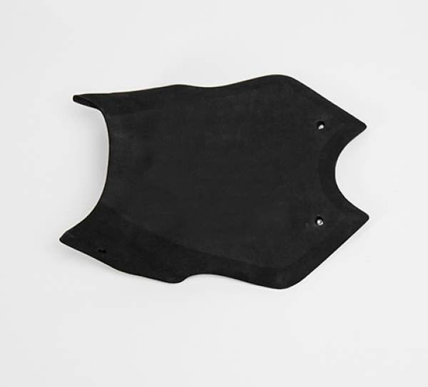 Mit Moosgummi bezogene GfK-Sitzplatte, die in der Regel mit vier Schnellverschlüssen am Höcker befestigt wird. Höheca. 45 mm.