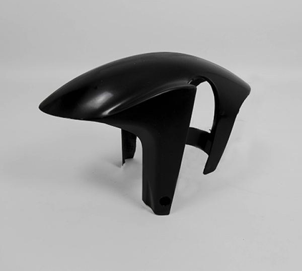 Leichter Vorderrad-Kotflügel aus gewebter GFK-Matte mit schwarzem Deckschichtharz (Gelcoat).